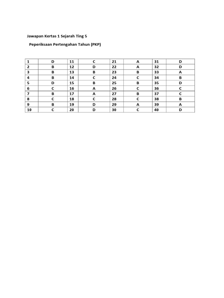 Jawapan Kertas 1 Peperiksaan Pertengahan Tahun Sejarah Ting 5 Pkp Pdf Pdf